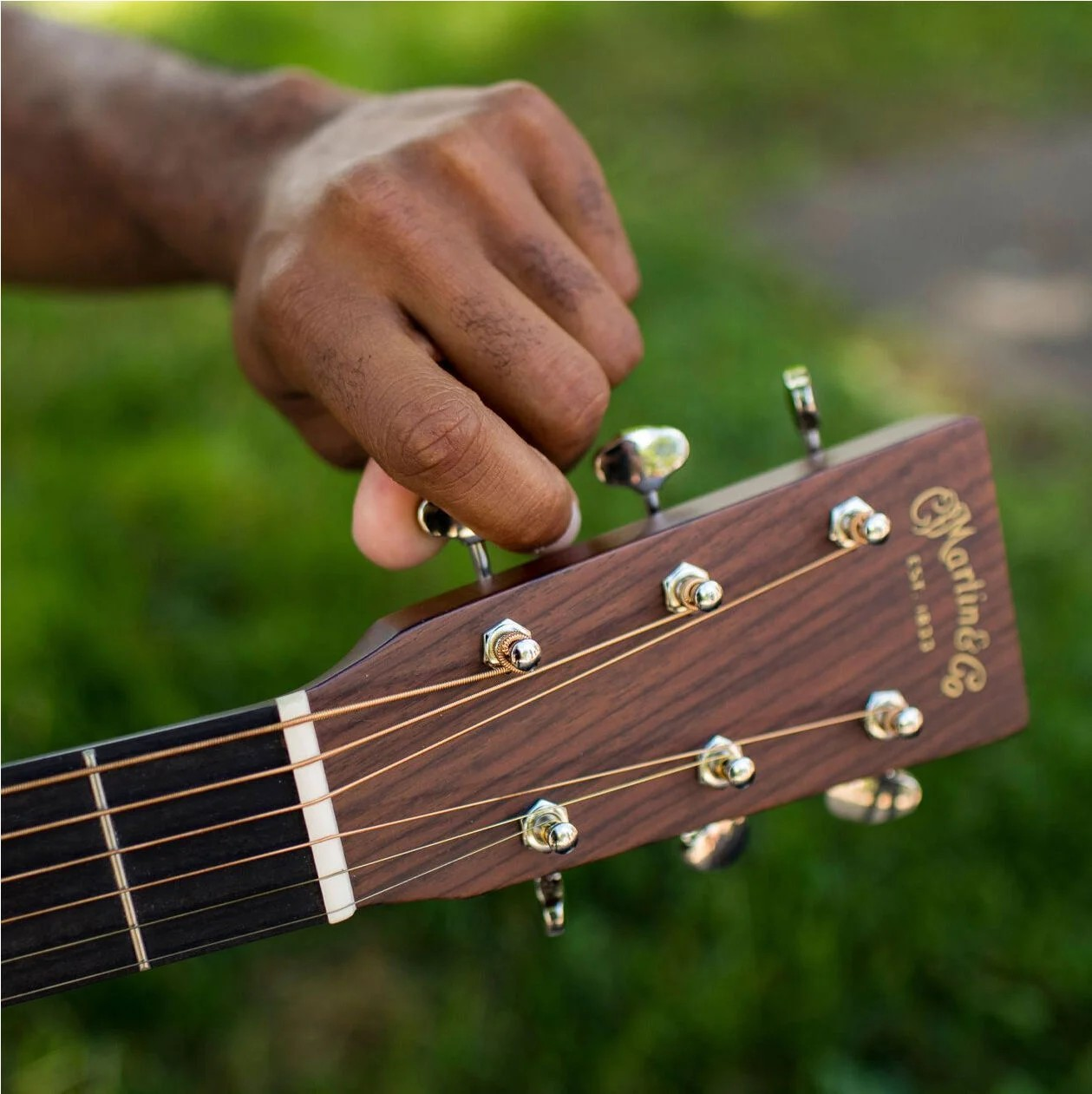 튜너가 없을 때는 귀를 이용해도 됩니다. 마틴 기타의 Dave Doll 매니저가 추천하는 방법은 다음과 같아요.