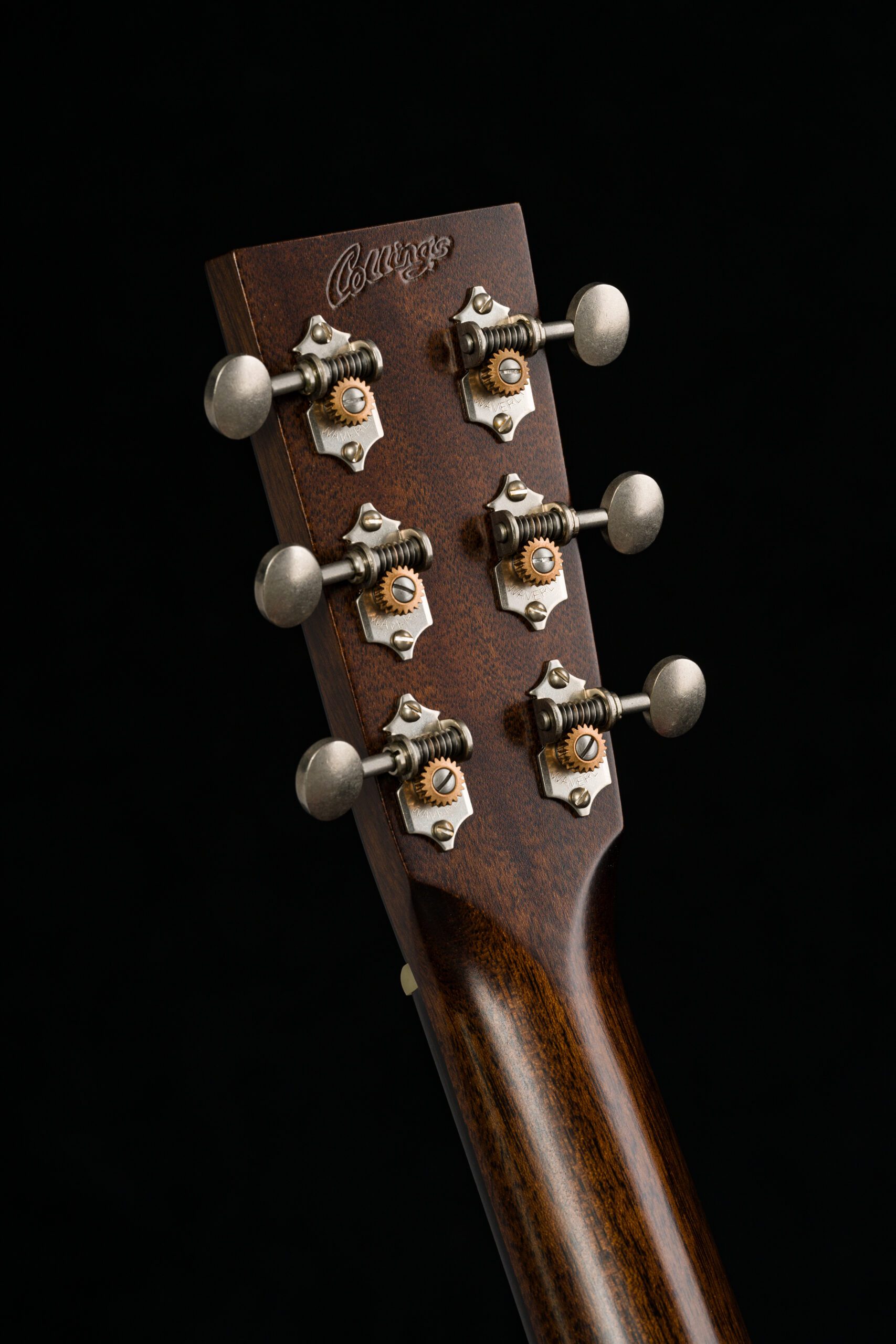 첫 인상부터 시선을 사로잡는 디자인. 기존의 화려한 Collings 모델들과 달리, 절제된 장식으로 기타 본연의 구조적 아름다움을 강조한다.
